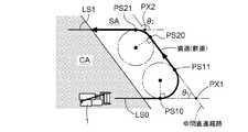 圃場に到着した収穫機1は、圃場の境界線の内側に沿って周回しながら収穫を行う。この作業は周囲刈りと呼ばれ、収穫作業ではよく知られた作業である。その際、コーナ領域では、未刈穀稈が残らないように前進と後進とを繰り返す走行が行われる。本形態では、少なくとも最外周一周は、刈り残しがないように、かつ、畦にぶつからないように、手動走行によって行われる。内周側の残りの数周は、周囲刈り専用の自動走行プログラムによって自動走行しても良く、また、最外周の周囲刈りに引き続いて手動走行によって行っても良い。このような周回走行の走行軌跡内側に残される作業対象領域CAの形状としては、自動走行による作業走行にとって都合が良いように、できるだけ簡単な多角形、好ましくは四角形が採用される。この内側の周囲刈りによって得られる走行軌跡の位置データに基づいて、外周領域SAを周回するための周回経路要素が作成される。The harvesting