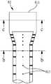 其中,线段b-b为设置多个边孔613的区域,当该导管本体61内的液体压力大于外界,液体将会从该多个边孔613向外喷出,线段c-c为该导管本体61的扁平状封闭末端611,是以热融、粘胶或其他方法将该导管本体61压扁封闭。接近扁平状封闭末端611的导管本体61必定成为椭圆形再逐渐过渡至导管原来的圆形。椭圆形的长径必大于圆形的直径,椭圆形的短径必小于圆形的直径。此过渡长度依材质硬度、管壁厚度及导管内外径而定。Wherein, the line segment bb is an area where a plurality of side holes 613 are provided. When the liquid pressure in the