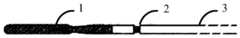 图1中的单极电极包括:金属电极、位于金属电极表面的第一导电涂层1、导电的金属部分3及位于第一导电涂层1及金属部分3之间的凹陷槽2。其中,所述第一导电涂层1用于和人体组织接触,所述金属部分3与所述电外科手术器械电连接,优选地,装入电外科手术器械的头部并和器械中的导体充分接触,所述凹陷槽2用于单极电极的锁止卡扣。所述第一导电涂层1为不粘涂层。The monopolar electrode of FIG. 1 includes a metal electrode, a first