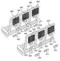 タッチパネル204は、ディスプレイ206の表面に配置される。乗客がディスプレイ206上の表示に触れると、タッチパネル204が触れた位置を示す情報をCPU202に伝送する。CPU202がこの情報に応じて制御を行うことで、乗客は直感的な操作が可能である。ディスプレイ206はCPU202からの命令に従い、各種コンテンツを表示する。The