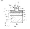 半導体レーザ素子等において、積層構造体は、少なくとも第2化合物半導体層の厚さ方向の一部分から構成されたリッジ構造を有するが、このリッジ構造は、第2化合物半導体層のみから構成されていてもよいし、第2化合物半導体層及び第3化合物半導体層(活性層)から構成されていてもよいし、第2化合物半導体層、第3化合物半導体層(活性層)、及び、第1化合物半導体層の厚さ方向の一部分から構成されていてもよい。リッジ構造の形成は、例えば、エッチング法に基づき行うことができる。In a semiconductor laser device or the like, the stacked structure has a ridge structure composed of at least a part of the second compound semiconductor layer in the thickness direction. This ridge structure may be composed of only the second compound semiconductor layer. It may be composed of a second compound semiconductor layer and a third compound semiconductor layer (active layer), or may be composed of a second compound semiconductor layer, a third compound semiconductor layer (active layer), and a first compound semiconductor layer. It may be composed of a part in the thickness direction. The ridge structure can be formed based on, for example, an etching method.