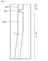 あるいは又、モード同期半導体レーザ素子において、第2端部(第4端部)におけるリッジストライプ構造の幅をW2、第1端部(第3端部)におけるリッジストライプ構造の幅をW1としたとき、W1=W2であってもよいし、W2>W1としてもよい。W2は5μm以上である形態とすることができ、W2の上限値として、限定するものではないが、例えば、4×102μmを例示することができる。また、W1は1.4μm乃至2.0μmである形態とすることができる。リッジストライプ構造の各縁部は、1本の線分から構成されていてもよいし、2本以上の線分から構成されていてもよい。前者の場合、リッジストライプ構造の幅は、例えば、第1端部(第3端部)から第2端部(第4端部)に向かって、単調に、テーパー状に緩やかに広げられる構成することができる。一方、後者の場合、リッジストライプ構造の幅は、例えば、第1端部(第3端部)から第2端部(第4端部)に向かって、先ず同じ幅であり、次いで、単調に、テーパー状に緩やかに広げられ、あるいは又、リッジストライプ構造の幅は、例えば、第1端部(第3端部)から第2端部(第4端部)に向かって、先ず広げられ、最大幅を超えた後、狭められる構成とすることができる。Alternatively, in the mode-locked semiconductor laser device, the width of the ridge stripe structure at the second end (fourth end) is W2 , and the width of the ridge stripe structure at the first end (third end) is W1 . Then, W1 = W2 may be satisfied, or W2 > W1 may be satisfied. W2 can be in a form of 5 μm or more, and the upper limit value of W2 is not limited, but can be exemplified by 4 × 102 μm, for example. Further, W1 may be 1.4 μm to 2.0 μm. Each edge of the ridge stripe structure may be composed of one line segment, or may be composed of two or more line segments. In the former case, the width of the ridge stripe structure is, for example, configured to be monotonously and gradually widened in a tapered shape from the first end (third end) to the second end (fourth end). be able to. On the other hand, in the latter case, the width of the ridge stripe structure is, for example, the same width from the first end (third end) to the second end (fourth end), and then monotonously. The width of the ridge stripe structure is first widened from the first end (third end) to the second end (fourth end), for example. After exceeding the maximum width, it can be configured to be narrowed.
