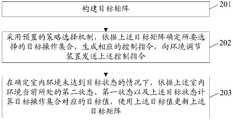 构建目标矩阵,上述目标矩阵的第一行元素为将室内环境从第一状态调整到目标状态可选择的至少两个操作集合所对应的参数值,上述参数值越大将上述室内环境从上述第一状态调整到上述目标状态的可能性越高,上述操作集合包括至少一种类型的调节操作;采用预置的策略选择机制,依据上述目标矩阵确定所要选择的目标操作集合,生成相应的控制指令,向环境调节装置发送上述控制指令,上述控制指令指示上述环境调节装置执行上述目标操作集合所指定的操作;在确定上述室内环境未达到上述目标状态的情况下,依据上述室内环境当前所处的第二状态、上述第一状态以及上述目标状态计算上述目标操作集合对应的目标值,使用上述目标值更新上述目标矩阵。Constructing a target matrix, wherein the first row element of the target matrix is a parameter value corresponding to at least two operation sets selectable to adjust the indoor environment from the first state to the target state, and the larger the parameter value is, the indoor environment is from the first The higher the possibility that the state is adjusted to the target state, the operation set includes at least one type of adjustment operation; using a preset policy selection mechanism, determining the target operation set to be selected according to the target matrix, and generating a corresponding control instruction, Transmitting the control command to the environment adjustment device, the control command instructing the environment adjustment device to perform an operation specified by the target operation set; and determining that the indoor environment does not reach the target state, according to the current indoor environment The two states, the first state, and the target state calculate a target value corresponding to the target operation set, and the target matrix is updated using the target value.