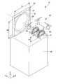 図5に示すように、脚部22は、本体部21の下側において、本体部21と繋がる。本実施形態において脚部22は、複数設けられる。より詳細には、脚部22は、鉛直方向Zと直交する一方向に隙間を介して一対設けられる。本実施形態において一方向は、幅方向Yである。一対の脚部22は、本体部21から下側に突出し、かつ、幅方向Yと平行な第1中心軸J1を囲む枠状である。第1中心軸J1は、例えば、脚部22の鉛直方向Zの中心における奥行方向Xの中心を通る。本実施形態において一対の脚部22同士の幅方向Yの距離は、鉛直方向Zの全体に亘って一様である。As shown in FIG. 5, the