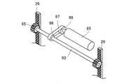 また昇降モータ85と平行に駆動軸93が回転可能に設けられている。そして駆動軸93の両端に、ピニオンギヤ95が設けられている。駆動軸93の中間部には、歯付きプーリ96が取り付けられている。