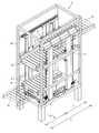 フレーム20には、図2の様に、4本の縦方向ガイド21と、4本の横方向レール27,28と、2本の横方向ラック32,33が設けられている。また各縦方向ガイド21の中に縦方向ラック26が設けられている。