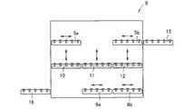上部側ステーション2と下部側ステーション3にはそれぞれ横方向載置台5,6がある。即ち上部側ステーション2には上部側横方向載置台5があり、下部側ステーション3には下部側横方向載置台6がある。上部側横方向載置台5は上部側ステーション2にあって、水平方向にのみ移動する載置台である。一方、下部側横方向載置台6は下部側ステーション3にあって、水平方向にのみ移動する載置台である。