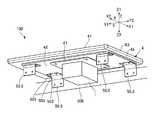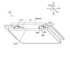 第2連結部材52は、2枚の板を積層した構造を有しており、入力ユニット4にZ方向の他方側Z2で対向する支持板部521と、支持板部521のY方向の両端部からZ方向の他方側Z2に折れ曲がった2枚の連結板部522とを有している。支持板部521には、第1連結部材51の第2板部502が連結されている。第2連結部材52の2枚の連結板部522は各々、機器のフレーム220、230にネジや接着剤等により連結されている。この状態で、2つの連結板部522はいずれも、Y方向に弾性変形可能な板バネ部である。The second connecting