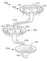 JP払出部150aは、ステーション部100a、100b、100cおよび100dによって共有される。JP払出部150aは、図2に示したようにゲーム装置10を平面視で見たときにゲーム装置10の中央に位置するように配置されている。JP払出部150aは、小玉M1の払出先を、ゲームフィールド110a、110b、110cおよび110dのいずれかに択一に切り替える経路切替部151a(後述する図20、図25、図27、図29参照)を有する。The