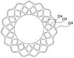本实施例中,所述第一波杆单元可以是由多根第一波杆构成的三角形、U型、菱形、五边形等。图6是本发明实施例一中的瓣膜支架在膨胀状态下环状结构的再一种俯视图,例如,参考图6,所述第一波杆单元为五边形等。再例如,参考图7,所述第一波杆单元为V型。又例如图5是本发明实施例一中的瓣膜支架在膨胀状态下环状结构另一种俯视图,参考图5,所述第一波杆单元还可以仅包括一个杆状的第一波杆224。In this embodiment, the first wave rod unit may be a triangle, a U shape, a diamond shape, a pentagon shape or the like composed of a plurality of first wave rods. Fig. 6 is still another plan view of the annular structure of the valve stent in the expanded state according to the first embodiment of the present invention. For example, referring to Fig. 6, the first wave rod unit is a pentagon or the like. For another example, referring to FIG. 7, the first wave rod unit is V-shaped. For example, FIG. 5 is another top view of the annular structure of the valve stent in the expanded state according to the first embodiment of the present invention. Referring to FIG. 5, the first wave rod unit may further include only one rod-shaped