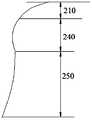 在膨胀状态下,所述过渡道结构240向内凹陷的形状沿着瓣膜支架200的中心轴的长度为2mm至20mm。In the expanded state, the shape of the inwardly recessed