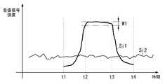 また、受信信号強度が、図4の「Si1」のような変化パターンを示す場合、時点t2~t3において規定時間(例えば、1秒間)における受信信号強度の変動幅は所定量W1以下であるので、判定部12は、第2条件を満たすと判定する。その結果、判定部12は、この商品91についての受信信号強度が判定条件(第1条件及び第2条件の両方)を満たすと判定し、この商品91が購入対象であると判定する。ここで、所定量W1は固定値であってもよいし、受信信号強度の実測値を基準とした所定割合(例えば、数%)の値であってもよい。In addition, when the received signal strength shows a change pattern such as “Si1” in FIG. 4, the fluctuation range of the received signal strength in a specified time (for example, 1 second) at time t2 to t3 is equal to or less than the predetermined amount W1. The