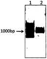 图2为示出本发明一个实施方案的表达载体pFastbac1-CD8-DAP12经限制性内切酶SphI和SalI双酶切的鉴定片段的电泳图;其中泳道1为DNA分子量标记,泳道2为鉴定片段。Figure 2 is an electropherogram showing the identification fragment of the expression vector pFastbac1-CD8-DAP12 digested with restriction endonucleases SphI and SalI according to one embodiment of the present invention; wherein