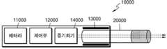 한편, 에어로졸 생성 장치(10000)는 배터리(11000), 제어부(12000) 및 히터(13000) 외에 범용적인 구성들을 더 포함할 수 있다. 예를 들어, 에어로졸 생성 장치(10000)는 시각 정보의 출력이 가능한 디스플레이 및/또는 촉각 정보의 출력을 위한 모터를 포함할 수 있다. 또한, 에어로졸 생성 장치(10000)는 적어도 하나의 센서(퍼프 감지 센서, 온도 감지 센서, 궐련 삽입 감지 센서 등)를 포함할 수 있다. 또한, 에어로졸 생성 장치(10000)는 궐련(20000)이 삽입된 상태에서도 외부 공기가 유입되거나, 내부 기체가 유출 될 수 있는 구조로 제작될 수 있다.Meanwhile, the