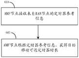 第三方面,提供了一种通信方法,包括:接入和移动性管理功能AMF节点接收来自无线接入网RAN节点的定时器参考信息,所述定时器参考信息为周期RAN通知区域更新定时器时长,或周期RAN通知区域更新监控定时器时长与周期RAN通知区域更新定时器时长之间的差值;所述AMF节点根据所述定时器参考信息,获得目标移动可达定时器时长,所述目标移动可达定时器时长用于设置移动可达定时器。具体地,所述AMF节点可以根据所述定时器参考信息和正常移动可达定时器时长,获得所述目标移动可达定时器时长。例如,所述目标移动可达定时器时长可以为所述正常移动可达定时器时长与所述定时器参考信息之间的差值。In a third aspect, a communication method is provided, comprising: an access and mobility management function AMF node receiving timer reference information from a radio access network RAN node, the timer reference information being a periodic RAN notification area update timer The duration, or the difference between the period RAN notification area update monitoring timer duration and the period RAN notification area update timer duration; the AMF node obtains the target mobile reachable timer duration according to the timer reference information, The target mobile reachable timer duration is used to set the mobile reachable timer. Specifically, the AMF node may obtain the target mobile reachable timer duration according to the timer reference information and the normal mobile reachable timer duration. For example, the target mobile reachable timer duration may be a difference between the normal mobile reachable timer duration and the timer reference information.