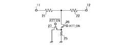 第1の状態時の等価回路を図10Aに示し、第2の状態の等価回路を図10Bに示す。実施の形態1の式(3)より高周波やR25の値が大きい場合は、周波数に依存することなく第1の状態と第2の状態の位相変動を抑えることができる。また、容量は本T型可変減衰器の減衰量の絶対値には影響を与えない。これにより第1の状態と第2の状態で通過位相の変動を抑えた、通過振幅の異なる特性を得ることができる。An equivalent circuit in the first state is shown in FIG. 10A, and an equivalent circuit in the second state is shown in FIG. 10B. When the high frequency and the value of R25 are larger than the expression (3) in the first embodiment, the phase fluctuation between the first state and the second state can be suppressed without depending on the frequency. Further, the capacitance does not affect the absolute value of the attenuation amount of the T-type variable attenuator. As a result, it is possible to obtain characteristics with different passage amplitudes in which fluctuations in the passage phase are suppressed in the first state and the second state.