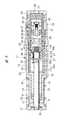 ピストン組立体35がピストンロッド18の基端部に設けられている。ピストン組立体35は、インナーチューブ21の先端部内に設けられた液体循環室36内に装着され、軸方向に移動自在である。液体循環室36内には、非圧縮性の作動媒体液として油が充填される。液体循環室36はピストン組立体35の前面側の前側液体室36aと、後面側の後側液体室36bとにピストン組立体35により仕切られている。ピストン組立体35は、ピストンロッド18の基端部に装着される環状ピストン37を有している。環状ピストン37の内径はピストンロッド18の外径よりも大きく、開閉通路38が、環状ピストン37とピストンロッド18との間に形成されている。ナットからなるストッパ41がピストンロッド18に形成された雄ねじ42にねじ結合され、環状ピストン37は突起部29とストッパ41との間を軸方向に移動自在である。A