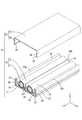 配索部材31の左右両端部寄りの位置には、底壁32及び一対の外壁33と、配索溝35の内面との間に、前後方向に延びる2個の空間が形成されており、外側肉盗み部42とされる。また、2つの配索溝35の内面と、底壁32との間には、前後方向に延びる空間が形成されており、内側肉盗み部43とされる。外側肉盗み部42及び内側肉盗み部43が形成されていることにより、配索部材31を構成する金属部材の厚さ寸法は、略同じに設定されている。Two spaces extending in the front-rear direction are formed between the