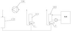 图1为制冷系统一种实施方式的示意框图,在本实施例中,制冷系统包括空调系统和电池冷却系统,空调系统包括压缩机100、冷凝器200、第一电子膨胀阀1以及蒸发器300;空调系统工作时,制冷剂通过压缩机100被压缩为高温高压的制冷剂,高温高压的制冷剂通过冷凝器200散热后成为常温高压的制冷剂,常温高压的制冷剂通过第一电子膨胀阀1,进入蒸发器300;由于常温高压的制冷剂经过第一电子膨胀阀1后压力减小,制冷剂就会汽化,变成低温的制冷剂,低温的制冷剂经过蒸发器300吸收大量的热量变成制冷剂并回到压缩机100;电池冷却系统包括热管理组件,空调系统中的制冷剂与电池冷却系统的工作介质在热管理组件中进行热交换。FIG. 1 is a schematic block diagram of an embodiment of a refrigeration system. In this embodiment, the refrigeration system includes an air conditioning system and a battery cooling system. The air conditioning system includes a