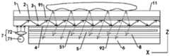 图9是图4所示导光板的多个光栅的光栅齿面在盖板上的投影示意图;9 is a schematic projection view of the grating tooth surfaces of the multiple gratings of the light guide plate shown in FIG. 4 on the cover plate;