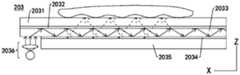 其中,电子设备200的盖板2031可参阅前述实施例中电子设备100的盖板1进行设计;第一粘接层2032可参阅前述实施例中电子设备100的第一粘接层2进行设计;导光板2033可参阅前述实施例中电子设备100的导光板3进行设计;第二粘接层2034可参阅前述实施例中电子设备100的第二粘接层4进行设计;图像传感器2035可参阅前述实施例中电子设备100的图像传感器6进行设计;光源2036可参阅前述实施例中电子设备100的具有发光单元7的光源进行设计。也即,后盖组件203中大部分结构可参阅前述实施例中电子设备100的屏幕组件10的结构进行设计,此处不再赘述。The