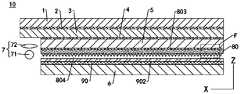 其中,棱镜膜80还包括本体801。多个微棱镜802位于本体801朝向空气层804的一侧。各微棱镜802的底面8021连接本体801。多个微棱镜802和本体801一体成型。一种实施方式中,各微棱镜802的底面8021平行于第二粘接层4,各微棱镜802的其中一个倾斜面8022与微棱镜802的底面8021之间形成第一角,出射光射出第三光栅35的出射角γ(参阅图11)和棱镜膜80与外界空气之间的临界角之和小于第一角。The