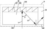 一种可选实施例中,所述盖板连接所述第一粘接层的底面包括第一短边和第一长边。所述第一长边垂直于所述第一短边。所述第一长边的长度大于所述第一短边的长度。在各组所述光栅组中,所述第二光栅部的入光面朝向所述第一光栅部,所述第二光栅部的出光面朝向所述第三光栅部。In an optional embodiment, a bottom surface of the cover plate connected to the first adhesive layer includes a first short side and a first long side. The first long side is perpendicular to the first short side. The length of the first long side is greater than the length of the first short side. In each of the grating groups, a light incident surface of the second grating portion faces the first grating portion, and a light emitting surface of the second grating portion faces the third grating portion.