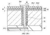 誘電体膜26は、例えば図5Aに示したように、半導体基板30上の第1誘電体膜26aおよび貫通孔30Hの側面に形成される第2誘電体膜26bを連続する単層膜として形成するようにしてもよいが、これに限らない。For example, as shown in FIG. 5A, thedielectric film 26 is formed as a continuous single-layer film including thefirst dielectric film 26a on thesemiconductor substrate 30 and thesecond dielectric film 26b formed on the side surface of the throughhole 30H. However, the present invention is not limited to this.