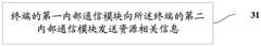 本公开实施例中,终端的第一内部通信模块向第二内部通信模块发送自身对应的通信模式的资源候选信息,和/或,其他通信模式的资源感知信息,使得第二内部通信模块可以根据资源候选信息和/或资源感知信息进行数据的收发,降低或避免多模的数据收发时的收发冲突和/或功率受限与干扰等问题,或在发生冲突或潜在冲突的时候在多个模块间丢弃部分数据,提高通信效率。In the embodiment of the present disclosure, the first internal communication module of the terminal sends the resource candidate information of the corresponding communication mode to the second internal communication module and / or the resource awareness information of other communication modes, so that the second internal communication module can Resource candidate information and / or resource awareness information to send and receive data, reduce or avoid problems such as sending and receiving conflicts and / or power limitation and interference during multi-mode data sending and receiving, or in multiple modules when conflicts or potential conflicts occur Partial data is discarded occasionally to improve communication efficiency.