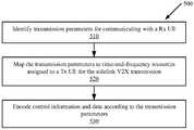 Figures 5A and 5B illustrate methods 500 and 501 for a Tx UE to perform sidelink V2X transmission according to one embodiment. The method 500 may be performed by the UE 150a and/or UE 150b of Figure 1 and/or the UE 700 of Figure 7 in some embodiments. The method 500 starts at step 510 when the UE identifies transmission parameters for communicating with an Rx UE. The UE at step 520 maps the transmission parameters to time-and-frequency resources assigned to the UE for the V2X transmission. The UE at step 530 encodes control information and data according to the transmission parameters.