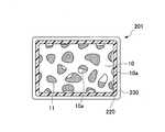 図10に、本実施形態の薬物投与体201を模式的に示す。薬物投与体201は、薬物が保持された多孔体10と、多孔体10の周囲に配置された粘着層220と、粘着層220を覆う被膜230とを備えている。A third embodiment of the present invention will be described with reference to FIGS.