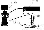 需要说明的是,本申请中,通过探头110向目标体发射激光,具体是指通过耦合在探头110上的光纤束向目标体发射激光,该光纤束可以是设置在探头110外部的,也可以是设置在探头110内部的,具体可以根据实际场景调整,此处并不作限定。It should be noted that in this application, the laser is emitted to the target body through the