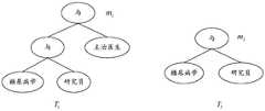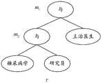 作为示例地,文件拥有者要将文件集合Μ={m1,m2}加密后上传到云服务器,首先,根据系统属性集合Y={"主治医生","糖尿病学","研究员"}对文件m1构造 与门结构访问树T1、对文件m2构造与门结构访问树T2,图3示出了与门结构访问树T1和与门结构访问树T2,T1对应的访问策略的属性集合Y1={"主治医生","糖尿病学","研究员"},即只有达到主治医生级别的糖尿病学研究员才能访问文件m1,T2对应的访问策略的属性集合Y2={"糖尿病学","研究员"},即只要是糖尿病学研究员就能访问文件m2。As an example, the file owner wants to encrypt the file set M = {m1 , m2 } and upload it to the cloud server. First, according to the system attribute set Y = {"attending doctor", "diabetes", "researcher"} file m1 is configured with a gate structure of an access tree T1, access tree T to the document2 is configured with the gate structure m2, FIG. 3 shows the access treeT. 1 and a door structure and a door structure of an access tree T2, T1 corresponding to Attribute set of access strategy Y1 = {"attending doctor", "diabetes", "researcher"}, that is, only diabetic researchers who reach the level of attending doctor can access the attribute set of access strategy corresponding to file m1 and T2 Y2 = {"Diabetes", "Researcher"}, that is, as long as a diabetes researcher can access the file m2 .
