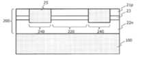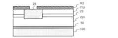 次に、図7Bに示すように、MOCVD装置の反応室から取り出した基板100に対してフォトリソグラフィおよびエッチング工程を行うことにより、p-GaN層21pおよび発光層23の所定領域(素子分離領域240が形成される部分、深さ:例えば1.5μm)を除去し、n-GaN層22nの一部を露出させる。窒化ガリウム系半導体のエッチングは、後述するように、塩素系ガスのプラズマを用いて行われ得る。Next, as shown in FIG. 7B, the