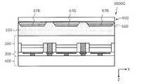 以下、図21を参照しながら、本開示の実施形態におけるフルカラー表示が可能なμLEDデバイス1000Cの構成例を説明する。図21では、Z軸の方向が図1AにおけるZ軸の方向から反転している。<Color display V>
