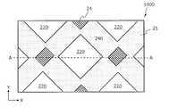 図1Bに示される例では、複数の金属プラグ24が離散的に配置されているが、本開示の実施形態は、このような例に限定されない。複数の金属プラグ24のそれぞれが、対応するμLED220を囲むリング形状を有していてもよい。また、金属プラグ24は、図1Cに示すように、一方向に平行に延びるストライプ形状を有してもよいし、図1Dに示すように、格子形状を有する1個の導電物であってもよい。In the example shown in FIG. 1B, the plurality of metal plugs 24 are arranged discretely, but the embodiment of the present disclosure is not limited to such an example. Each of the plurality of metal plugs 24 may have a ring shape surrounding the corresponding
