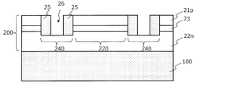 図7Cに示すように、素子分離領域240を規定する空間を埋め込み絶縁物25で満たす。埋め込み絶縁物25の材料および形成方法は、任意である。図示されている例において、埋め込み絶縁物25の上面は平坦化され、p-GaN層21pの上面と同一のレベルに位置している。As shown in FIG. 7C, the space defining the