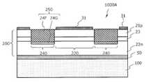 本開示の実施形態において、フロントプレーン200の上面は、図1Aに示されるように平坦化されていることが好ましい。このような平坦化は、素子分離領域240における金属プラグ24および埋め込み絶縁物25の上面のレベルが、μLED220における第1半導体層21の上面のレベルに略一致することにより実現されている。In the embodiment of the present disclosure, the upper surface of the