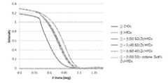 표 9의 결과를 참조하면, 조성물의 경우 단일막 증착보다는 GPC가 좀 더 높은 경향을 나타내었다. 이는 증착 공정에서 조성물을 구성하는 2성분의 상호보완적 효과로 인하여 seed 형성 촉진과 증착 단계에서의 표면 반응 면적이 촉진되기 때문으로 생각된다.또한, 제조된 Zr 산화물 박막, Hf 산화물 박막, Zr/Hf 산화물 박막에 대한 X-선 반사측정(X-Ray Reflectivity, XRR)를 확인한 결과 막 밀도는 표 10 및 도 9와 같다.Referring to the results in Table 9, the composition showed a higher tendency for GPC than single film deposition. This is thought to be due to the promotion of seed formation and the surface reaction area in the deposition step due to the complementary effect of the two components constituting the composition in the deposition process. In addition, the prepared Zr oxide thin film, Hf oxide thin film, Zr/ As a result of confirming X-ray reflectivity (XRR) for the Hf oxide thin film, the film densities are shown in Table 10 and FIG. 9.
