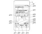 In addition, the secondmobile terminal 3 has a first geography on the map image g320 by a predetermined operation of the operator (for example, a tap operation of tapping the screen with a fingertip) at the time of going to school and when leaving school. When the target position image g351 is selected, the deletion dialog box g417 is displayed on the safety confirmation point setting screen g410 on thedisplay unit 34.
