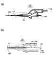 1つの実施形態では、上記接続プラグは、内部が中空となるように成形された2つの中空カバーで構成されており、かつ上記カテーテル内の上記補強パイプの近位端は、該中空カバー内にまで延びている。In one embodiment, the connecting plug is composed of two hollow covers molded so that the inside is hollow, and the proximal end of the reinforcing pipe in the catheter is in the hollow cover. Extends to.