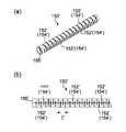 図5は、図1に示す軟性内視鏡を構成するカテーテル内の補強パイプの配置を説明するための図である。図5の(a)~(c)は、図3の(a)~(c)にそれぞれ対応し、補強パイプ150の断面に関する記載を省略している。FIG. 5 is a diagram for explaining the arrangement of reinforcing pipes in the catheter constituting the flexible endoscope shown in FIG. (A) to (c) of FIG. 5 correspond to (a) to (c) of FIG. 3, respectively, and the description regarding the cross section of the reinforcing