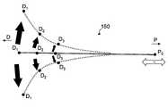 補強パイプ150に設けられた隣り合う2つのスリット部の間隔が、遠位側(D)の位置D1、D2、D3から近位側(P)の位置P0にかけて、徐々に拡大するように設けられている場合、遠位側(D)の位置D1、D2、D3における屈曲性(黒矢印)は、位置D1が最も大きく、位置D2およびD3の順に徐々に低下し、そして近位側(P)の位置P0では補強パイプ150の屈曲性は最も制限される(D1>D2>D3>P0)。言い換えれば、補強パイプ150の可撓性は遠位端に向かうほど大きくなる(D1>D2>D3>P0)。これに対し、近位側(P)の位置P0では補強パイプ150の剛性は最も高くなり、位置D3、D2、およびD1の順に徐々に低下する(D1<D2<D3<P0)。すなわち、補強パイプ150の近位側ほど、軸方向に働く力(白矢印)が緩衝されにくくなり、医師がカテーテルを前進させる際の押し込み性、追随性および通過性は保持される。その結果、補強パイプ150は、遠位端から近位端にかけて不均一な(あるいは勾配のある)屈曲性を有し得る。The distance between the two slit portions adjacent which is provided on the reinforcing