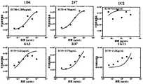 最后,用免疫荧光法检测各PD-L1抗体与天然PD-L1蛋白的结合能力。用表达全长人PD-L1的质粒pVKD1.0-PD-L1-Full(苏州工业园区唯可达生物科技有限公司提供)转染至Hela细胞,48小时后先用含5%FBS的 PBS室温封闭30分钟,然后加入各个梯度的抗PD-L1抗体孵育,室温1小时,然后用PBS洗涤3遍后,加入1:1000稀释的羊抗鼠-PE二抗(Santa Cruz,货号:sc-3752),室温孵育30分钟后,用荧光显微镜观察(美国BioTek,Cytation 3)成像拍照。结果如图3所示,各个抗PD-L1抗体均能有效结果细胞膜表面表达的PD-L1蛋白。根据所得荧光强度,经计算分析,得到免疫荧光法染色的EC50效价,结果见图4,其最后结果汇总于表6。Finally, immunofluorescence was used to detect the binding ability of each PD-L1 antibody to the natural PD-L1 protein. Transfected into Hela cells with the plasmid pVKD1.0-PD-L1-Full (provided by Suzhou Industrial Park Weida Biotechnology Co., Ltd.) expressing full-length human PD-L1. After 48 hours, first use PBS containing 5% FBS at room temperature Block for 30 minutes, then add each gradient of anti-PD-L1 antibody to incubate at room temperature for 1 hour, then wash with PBS for 3 times, add 1:1000 diluted goat anti-mouse-PE secondary antibody (Santa Cruz, catalog number: sc-3752) ), after incubating at room temperature for 30 minutes, observe with a fluorescence microscope (BioTek,