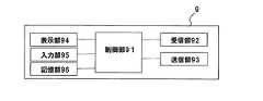 携帯端末9の制御部91は、コンピュータであり、CPUとメモリを有している。制御部91は、受信部92、送信部93、表示部94、入力部95、記憶部96を制御する。表示部94は、タッチパネルとなっており、入力部95を兼用している。The control unit 91 of the
