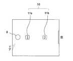 図9の表示画面9aは、室内機選択画面である。表示画面9aの中央部には、室内のマップが表示されている。この部屋において、第1室内機11a(「1」と表示)、第2室内機11b(「2」と表示)の配置を示している。図9では、第1空調機「1」が選択され、マップ上で、第1室内機「1」が反転表示されている。図9において、各室内機のアイコンをタッチすることによって、選択を切り替えることができる。The
