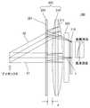 エアー距離を変えることで画面中心での光束集束位置に対して画面周辺の光束集束位置を前後に変えることができ、それにより像面湾曲を調整することができる。なお、図2Bに示すようにコーン角の変化量はハーフミラー面311の周辺ほど大きくなるから、エアー距離を変えることで像面湾曲を補正することができる。By changing the air distance, the luminous flux focusing position around the screen can be changed back and forth with respect to the luminous flux focusing position at the center of the screen, and the curvature of field can be adjusted accordingly. As shown in FIG. 2B, the amount of change in the cone angle becomes larger toward the periphery of thehalf mirror surface 311. Therefore, the curvature of field can be corrected by changing the air distance.