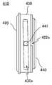 第1ケース420は、第2ケース440をその内部空間420aに繰り出し可能に収容する筐体である。第1ケース420は、胴部421、第1及び第2フランジ部422,423を有する。胴部421は、内部空間420aを含む円筒形状を有し、側面に、軸方向に延びるスリット421aが設けられている。第1フランジ部422は、胴部421の一端から外向きに張り出して形成されるともともに、内側に延びて胴部421の内径より小さい円形状の開口422aを形成する。第2フランジ部423は、胴部421の他端から外向きに張り出して形成される。Thefirst case 420 is a housing that accommodates thesecond case 440 in theinternal space 420a so that it can be extended. Thefirst case 420 has abody portion 421, first and second flange portions 422,423. Thebody portion 421 has a cylindrical shape including aninternal space 420a, and aslit 421a extending in the axial direction is provided on a side surface thereof. Thefirst flange portion 422 is formed so as to project outward from one end of thebody portion 421, and also extends inward to form acircular opening 422a smaller than the inner diameter of thebody portion 421. Thesecond flange portion 423 is formed so as to project outward from the other end of thebody portion 421.