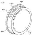 第2フランジ部423は、先述の第1ケース420から独立した部材として、リング状に成形されている。第2フランジ部423の内径は胴部421の内径に等しく、その外径は胴部421の外径より大きい。Thesecond flange portion 423 is formed in a ring shape as a member independent of the above-mentionedfirst case 420. The inner diameter of thesecond flange portion 423 is equal to the inner diameter of thebody portion 421, and the outer diameter thereof is larger than the outer diameter of thebody portion 421.