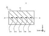 BT50は、例えばX方向に所定のピッチで複数の斜行レンズ部51を配列するように形成される。本構成例において、斜行レンズ部51は、配列方向(即ちX方向)およびBT50の厚み方向(即ちY方向)の双方に対して45°傾斜している。BT50における斜行レンズ部51の傾斜は、必ずしも45°でなくてもよく、例えばY方向に対して40°~50°であってもよい。The BT50 is formed so as to arrange a plurality of